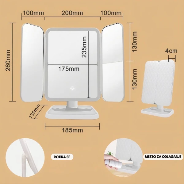 “Koristim ga svakodnevno kada se sređujem za posao i toplo ga preporučujem. Konačno mogu da vidim šta radim dok se šminkam. Praktično je, ne zauzima puno prostora i lepo izgleda na stolu.” – Nikolina C.
